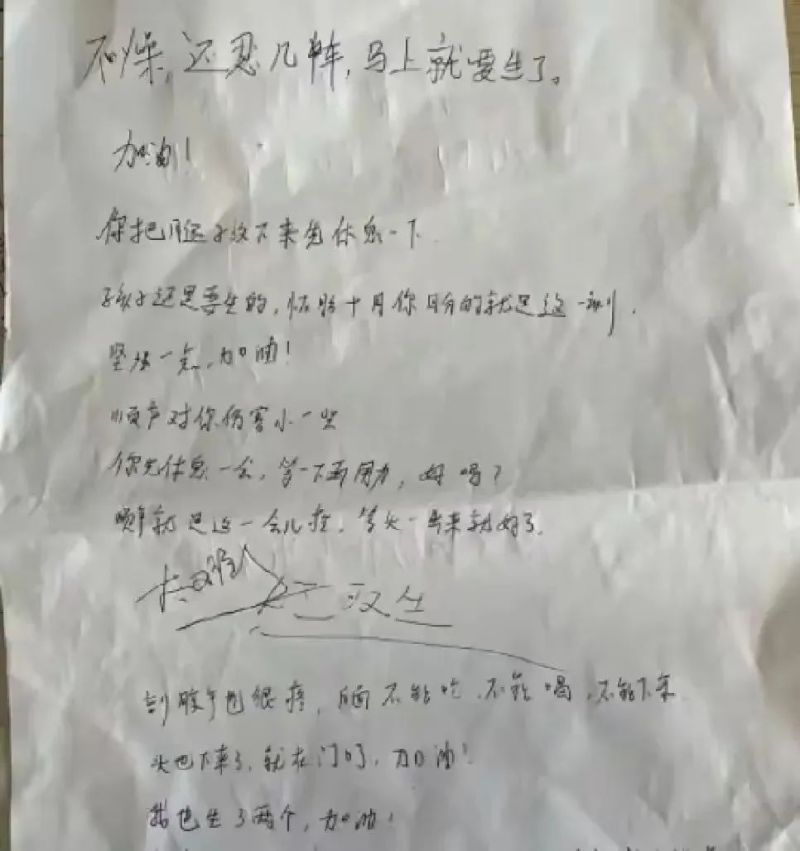 看到妇产科医生在纸上写的提示