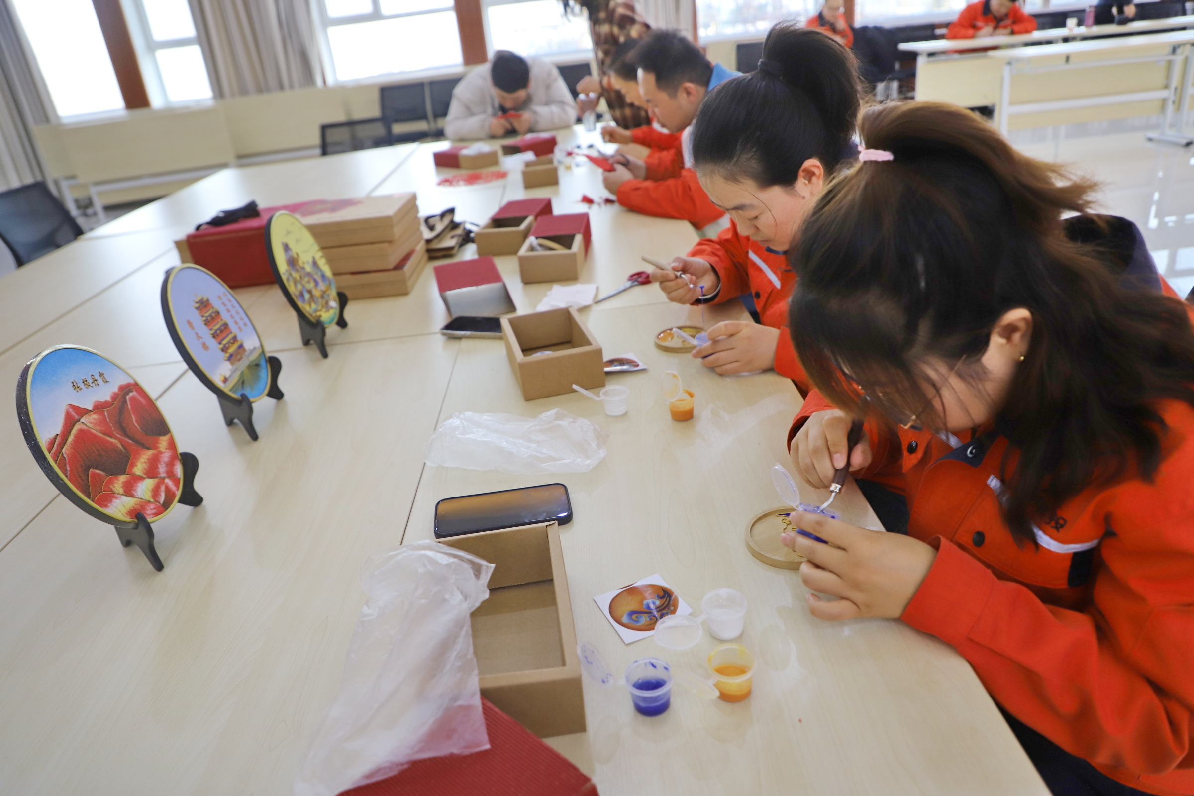 同时,组织职工开展文化体验活动,邀请高台能工巧匠甘肃九发文化传媒有限公司职工杜彩虹为大家介绍非遗技艺的历史和知识,讲解掐丝珐琅画制作步骤和窗花剪纸技巧,并指导大家剪窗花、制作掐丝彩岩画,让职工近距离体会非遗魅力,弘扬中华优秀传统文化。