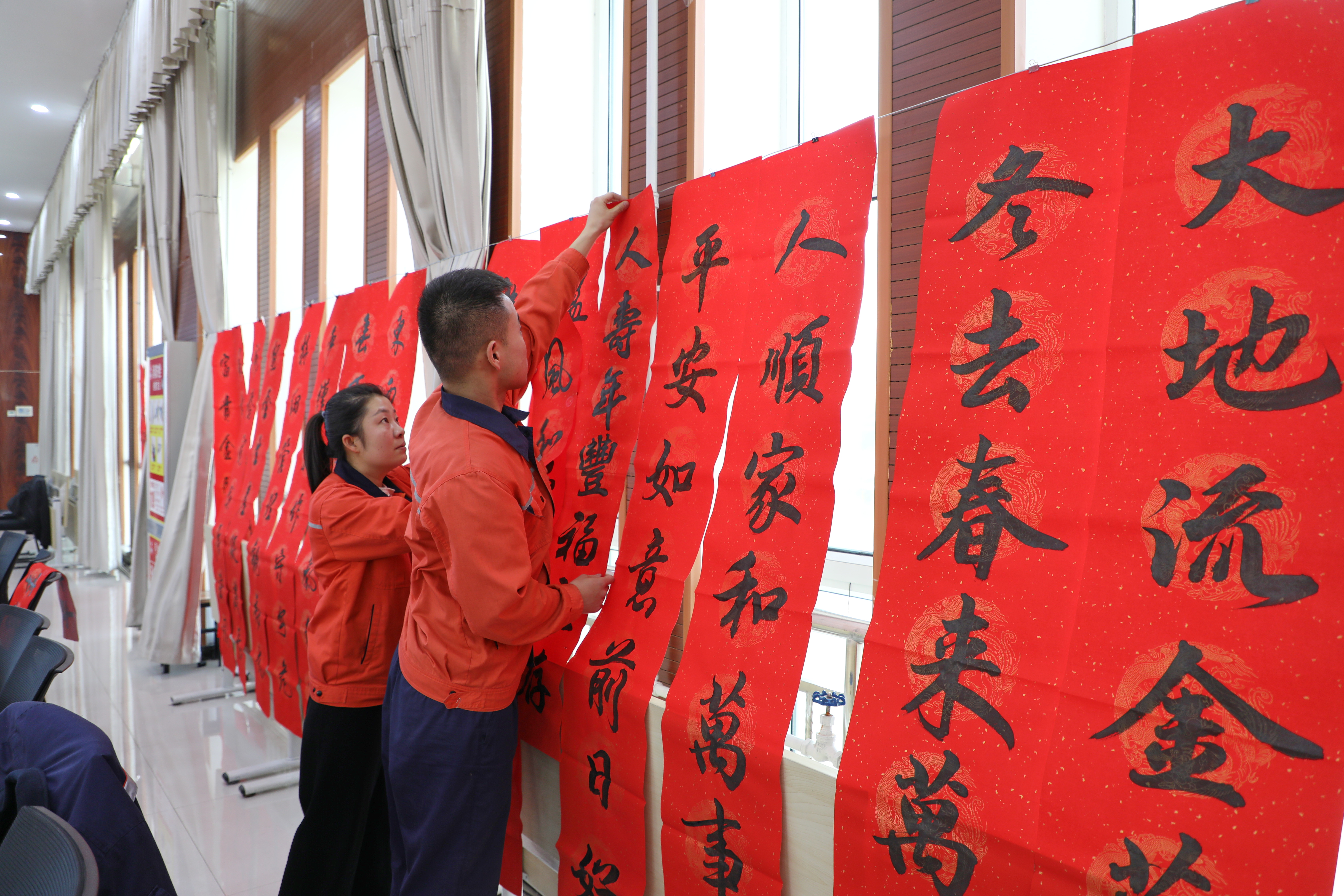 活动现场,书法家们结合企业及职工的需求,挽袖执笔、泼墨挥毫、笔走龙蛇,一副寓意吉祥的春联,道出了对职工新一年的美好祝福和对企业发展万象更新、蒸蒸日上的美好愿景和期盼。职工们纷纷驻足欣赏,挑选自己喜欢的春联,在墨香与纸韵中感受传统年俗文化。企业职工张峰表示,手写的春联和福字更有年味,收到工会这样的礼物感觉很暖心。