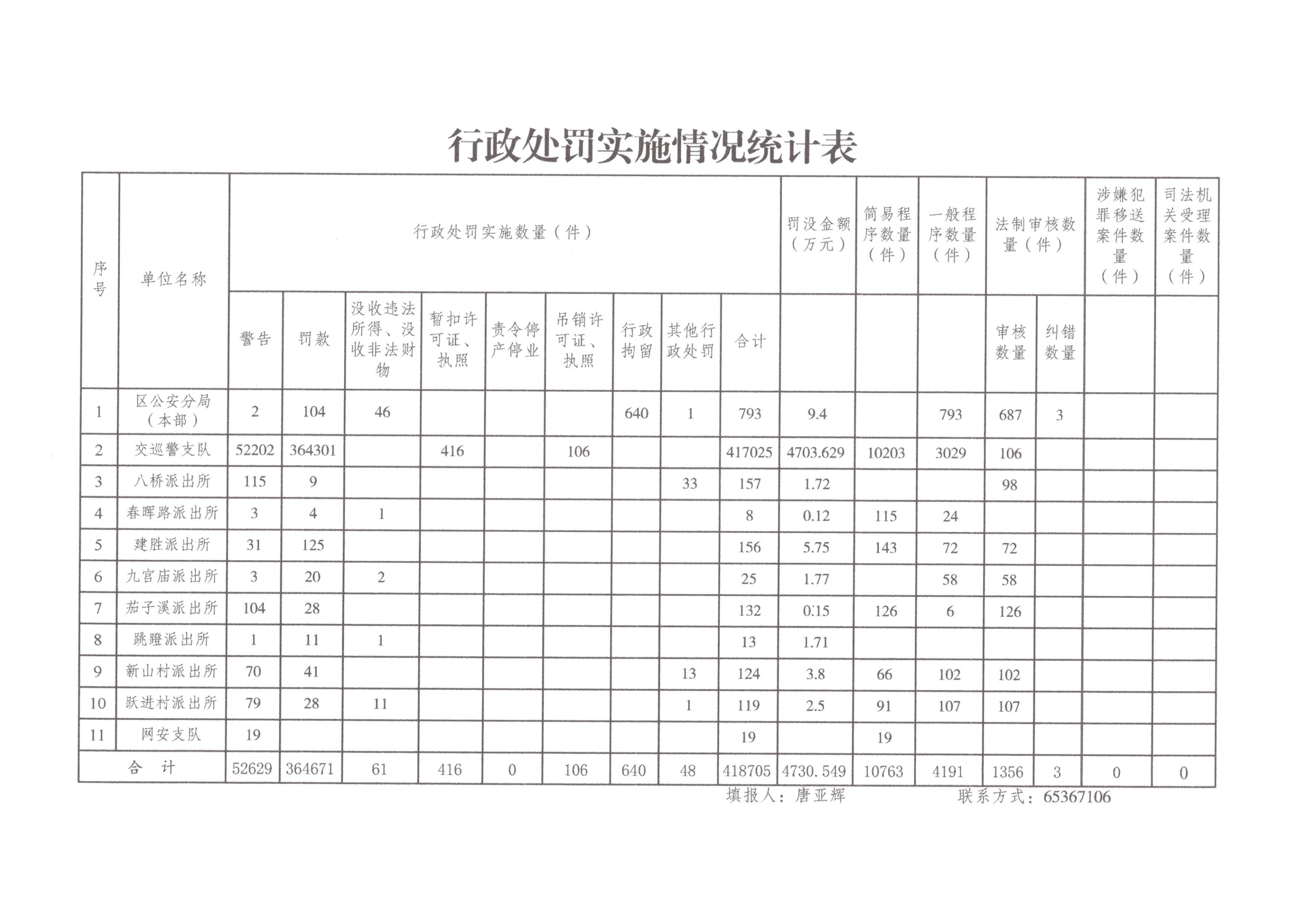 重庆市公安局大渡口区分局2024年行政执法数据