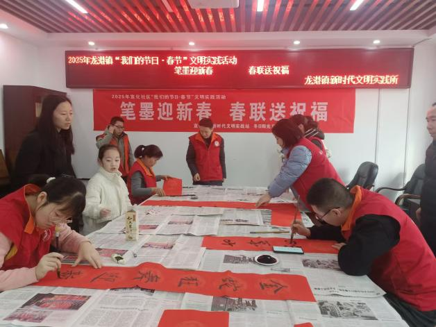 为弘扬中华优秀传统文化,推动乡风文明建设,营造欢乐吉祥、温暖和顺的节日氛围,在新春佳节即将到来之际,龙港镇依托新时代文明实践所、站开展了“笔墨迎新春 ?春联送祝福”、“萌娃喜迎春 ?唱响万家福”等一系列“我们的节日·春节”文明实践活动。同时,充分利用春节假期返乡人员多的契机,组织开展了文明餐桌、深化殡葬改革、倡导婚事新办、抵制封建迷信等移风易俗主题宣传活动。?