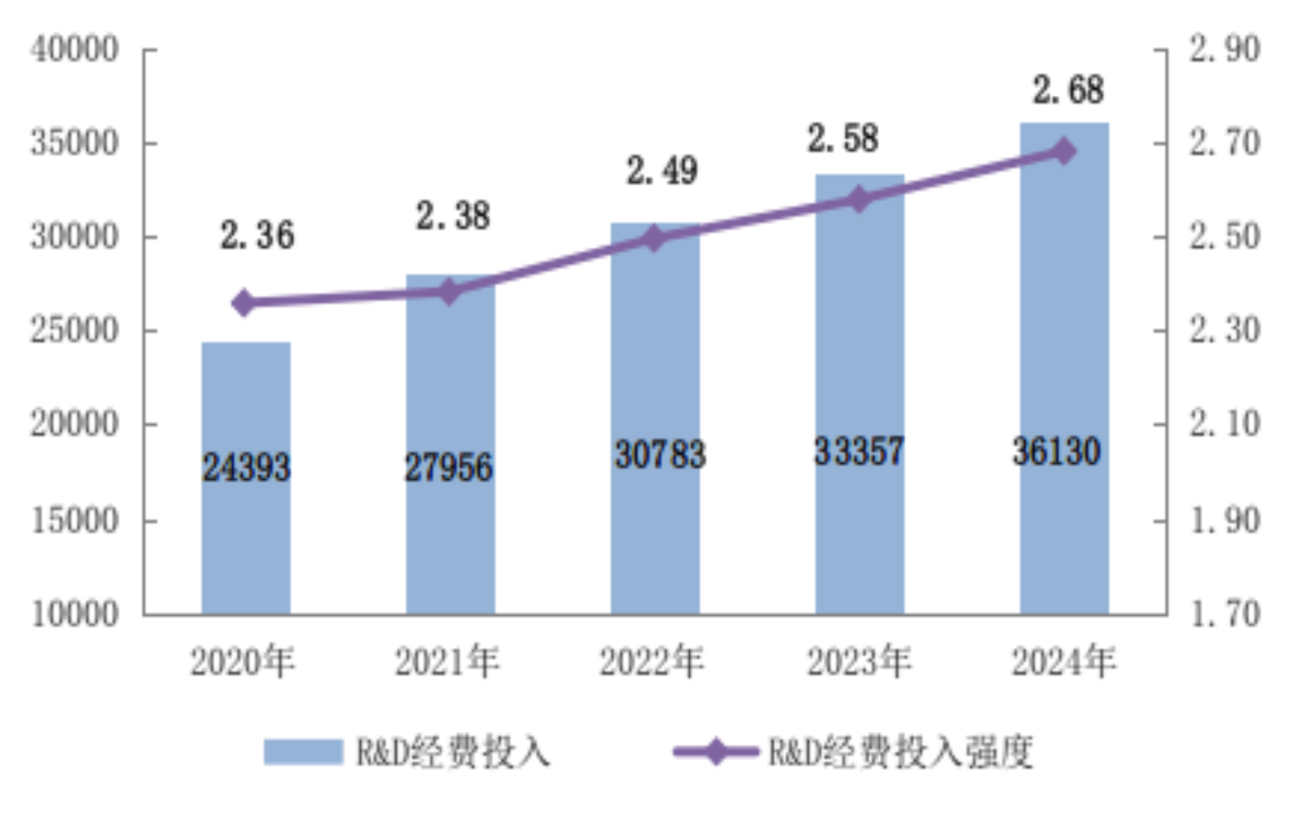 2024年我国研究与试验发展(R&D)经费超过3.6万亿元
