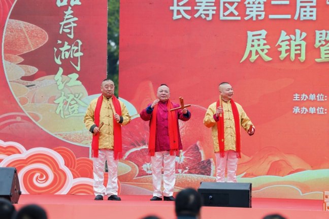 下午2点整,伴着优美的旋律,活动正式拉开序幕。表达丰收喜悦的舞蹈、极具农村特色的金钱板、带着美好祝愿的歌唱……在展销暨评选活动现场,喜气洋洋的节目依次上演,将长寿湖寿湖红橙产业发展、欣欣向荣的景象展现得淋漓尽致,吸引了众多游客和当地群众前来观看。