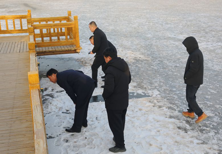 检查组首先对湿地公园内火源管理、滑冰区域、亮化设施、桥梁栈道等重点区域、关键部位开展隐患排查,对冰面游玩人员进行安全提醒,并要求全体工作人员加强值班值守、靠实安全责任,确保节日期间湿地公园各项工作安全有序推进。