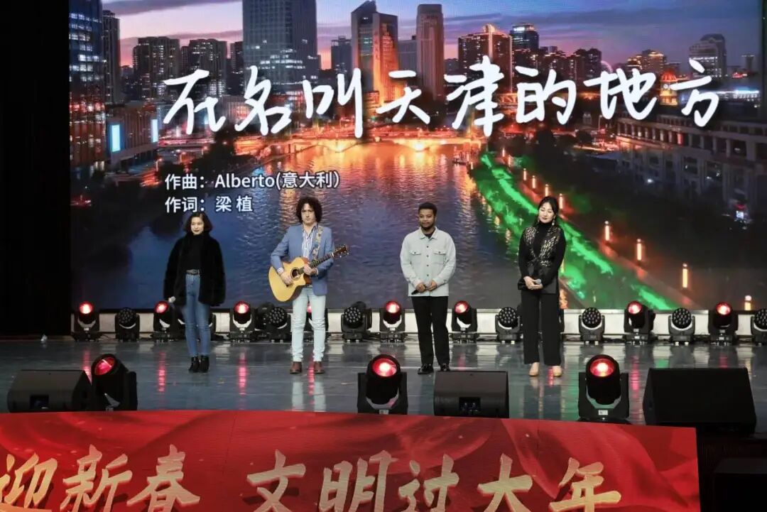 在“文化传承润万家·文明实践贺新春”河西区文明实践集中日主题活动中,来自天津外国语大学的外籍教师阿尔贝托与留学生们共同演唱了歌曲《在名叫天津的地方》,赢得了观众的热烈掌声。该曲目由阿尔贝托作曲,曲中表述的内容也正是他想要和大家分享的。