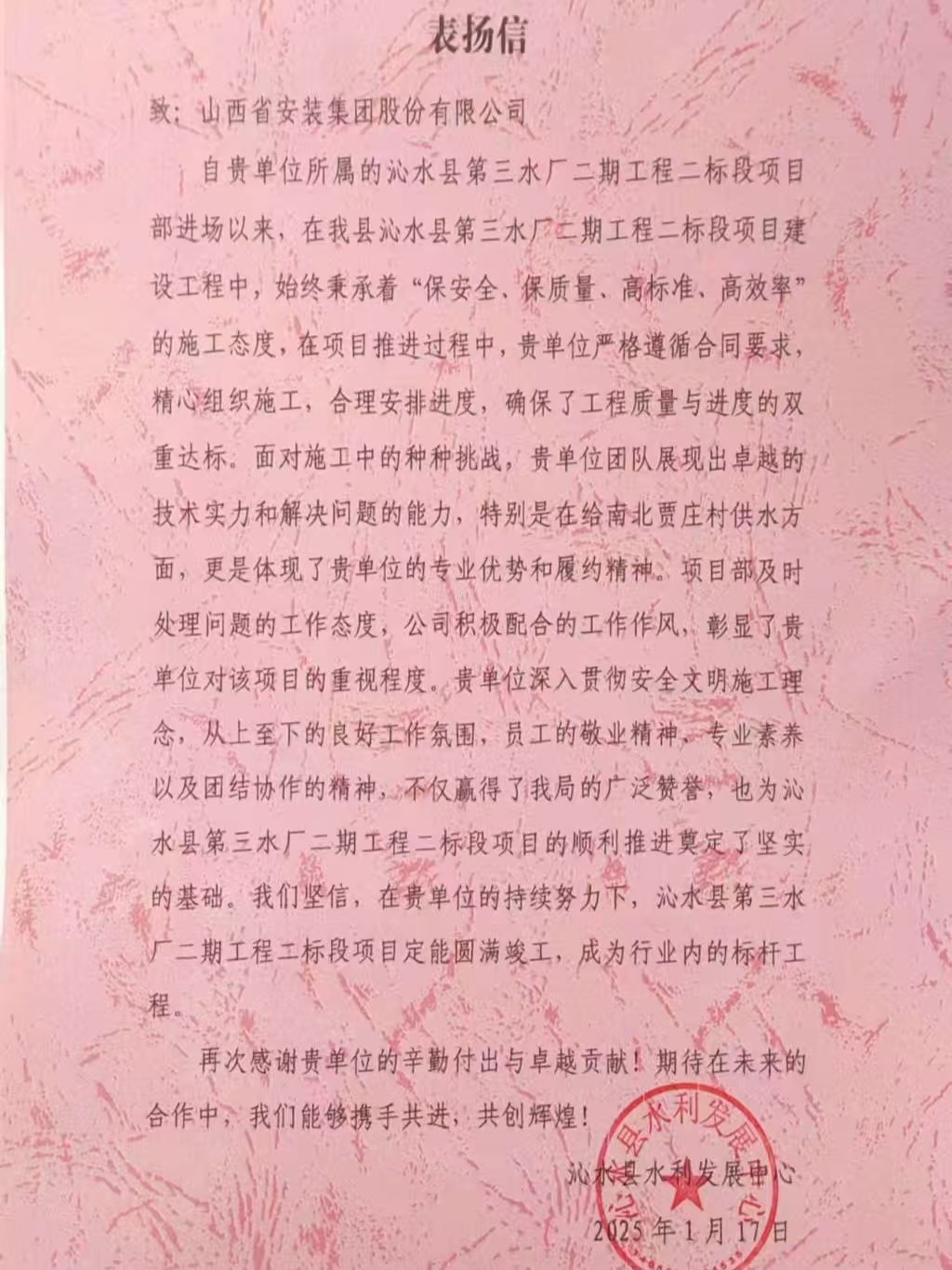 1月份以来,华中工程公司在多个工程项目中凭借出色的施工能力和专业精神,接连收到来自不同项目业主单位的表扬信,充分彰显了华中工程公司在工程建设领域的卓越实力和良好口碑。