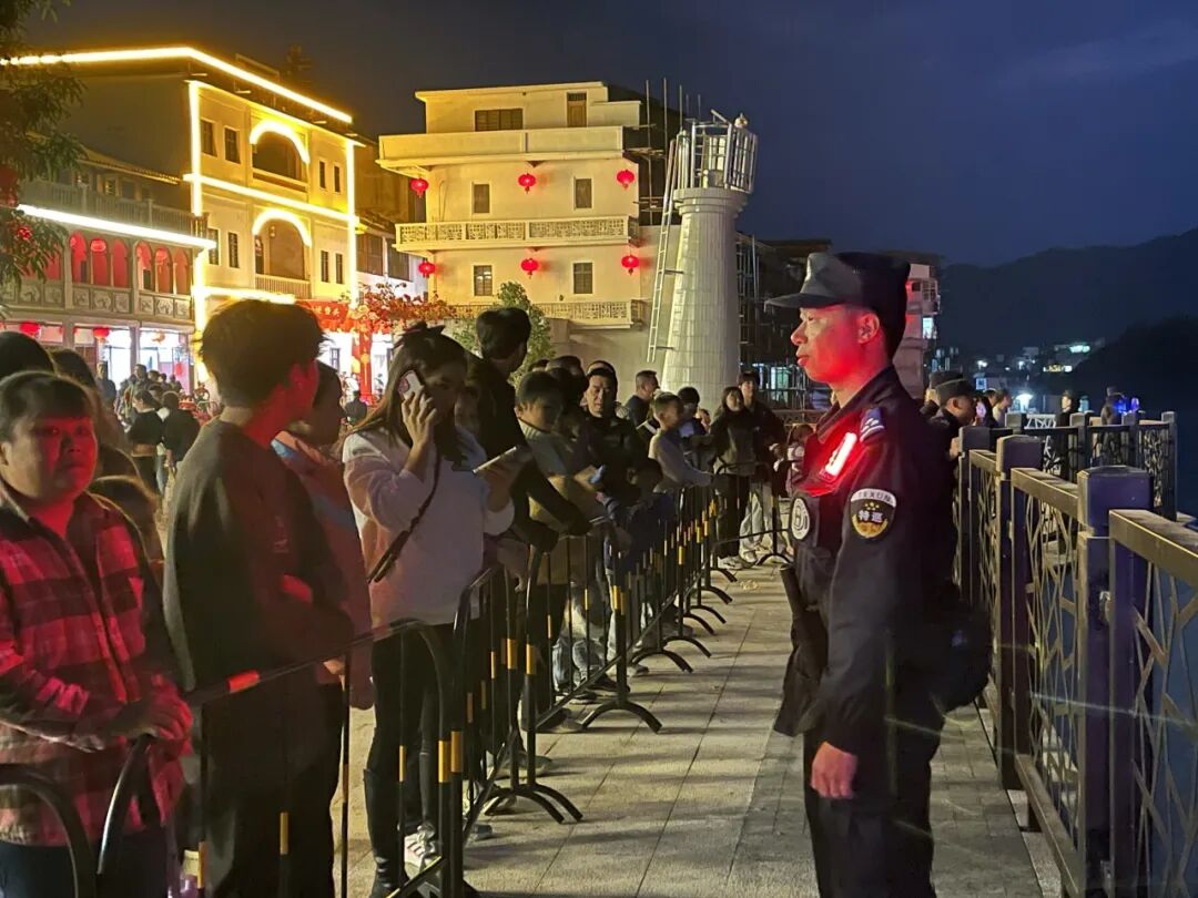 市、区公安机关高度重视此次活动安保工作,分局召开安保专题会议进行部署,市、区公安机关领导先后多次到实地勘踏,及时发现、消除安全隐患,对安保工作进行精细部署,完善工作方案和应急处突预案。 24日14时30分,执勤警力提前到达指定区域,对周边重点路段、主要路口实行临时交通管控,引导群众车辆有序停放,对人流、车流进行疏导,并根据现场情况实时调配警力部署,严防拥挤、踩踏事故发生。 在活动现场及其周边重点区域,严格落实隐患排查、人员疏导引导工作,通过警种协调联动,镇、村(居)干部、志愿者配合,切实保障活动及其周边的各项安全。 24日21时,活动顺利圆满结束。整个安保活动,全体民辅警以最高的标准、最严的举措、最实的举措,不辞辛苦,默默坚守,全力护航活动安全,让群众度过了一个欢庆之夜、难忘之夜。