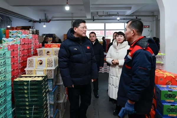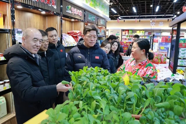 宋钦炜先后来到跃兴农产品物流城、乡村振兴馆梅河口农副产品超市检查春节期间蔬果物资保供情况,了解节日市场农副产品种类、货品储备、销售价格、采购流程、日常监督管理以及企业安全生产管理落实等情况,并听取相关负责人情况汇报。