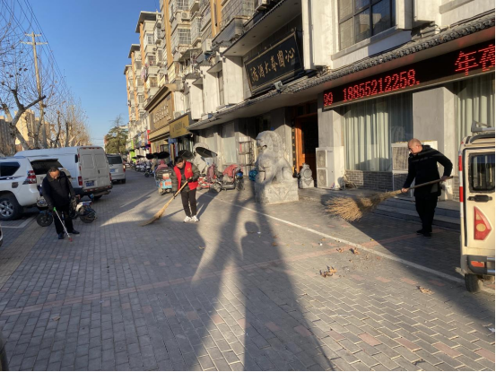 大家对路面上的垃圾杂物、枯叶以及卫生死角进行集中清理,同时还对来往行人进行文明创建工作的宣传,引导广大市民从我做起、从身边事做起,尊重环卫工人的劳动成果,爱护我们美好的生活家园。