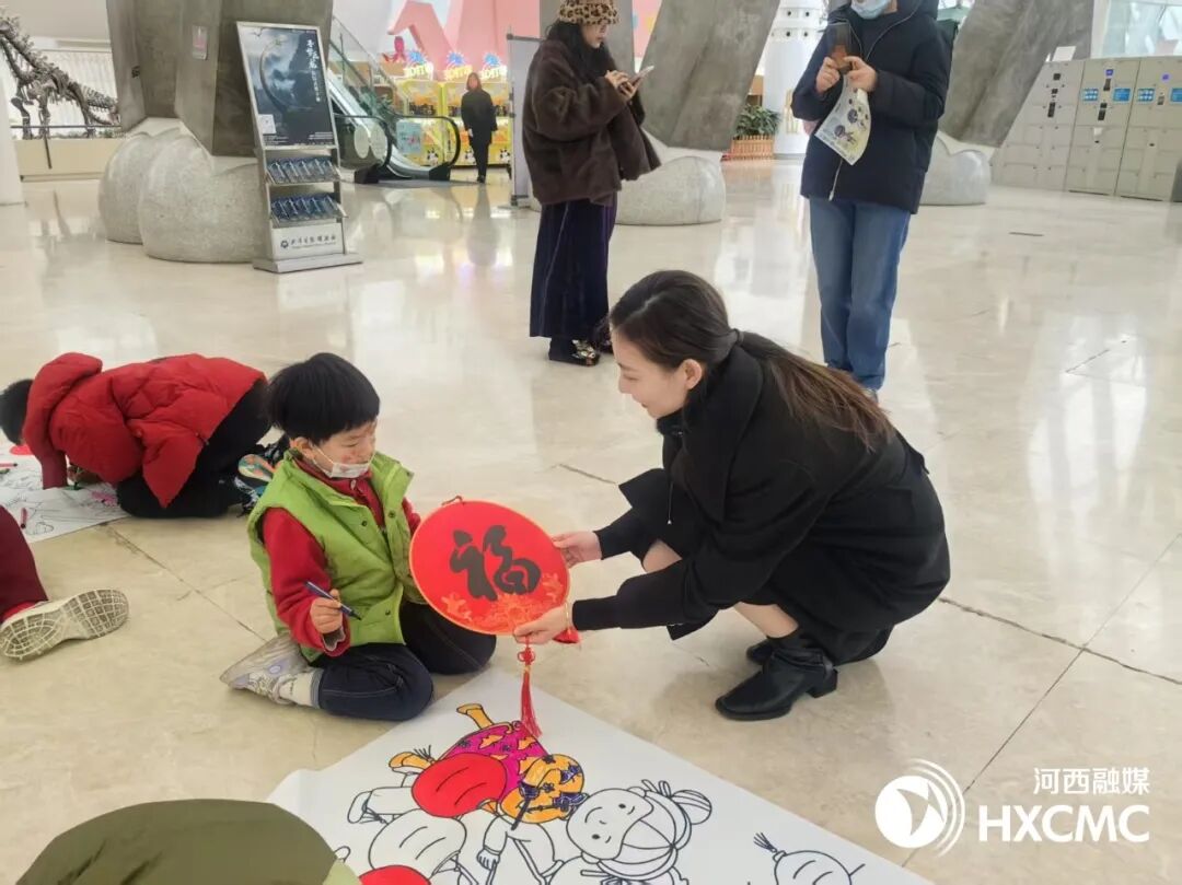 大年初二早上10点半,天津自然博物馆共享大厅热闹非凡。“百米长卷,画蛇添福”儿童绘画活动正在这里火热进行,孩子们尽情挥动画笔,用绚丽色彩描绘出蛇的灵动姿态,写下对新春的美好祝福。负责组织活动的杜雅星,眼神中满是快乐。