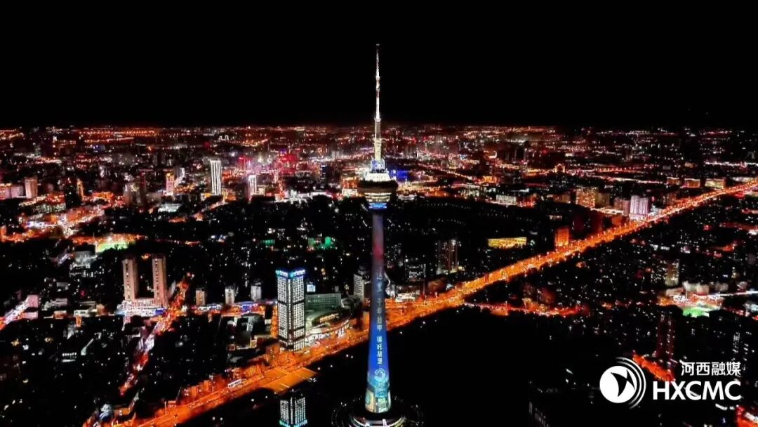 ——在天塔湖风景区,伴随人们的欢呼声,“海河西岸 品质之城 河西欢迎您”天塔主题灯光秀上演。