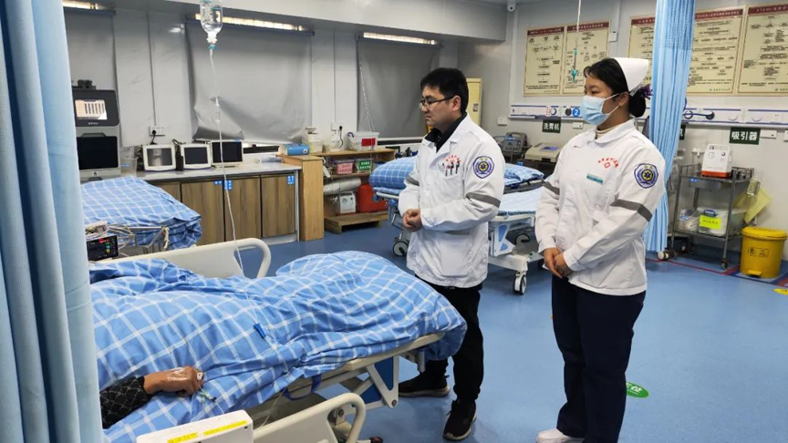 刚接诊完几名患者,没过几分钟,一通来自中渡镇的急救电话就打到了急诊科,了解情况后,覃俊与其他医护人员立即拿上工具,乘坐120救护车赶往急救现场。