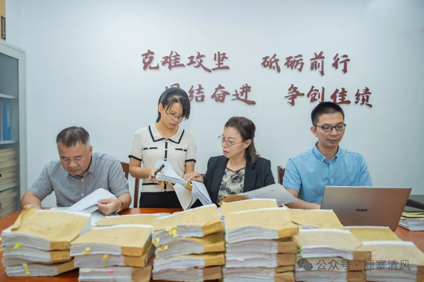 鹿寨县纪委监委坚持严的基调,紧盯人、事、财、权等方面,严肃查处医疗、国企、工程建设等重点领域腐败问题。图为该县纪检监察干部查看会计凭证,排查问题线索。潘婷 摄