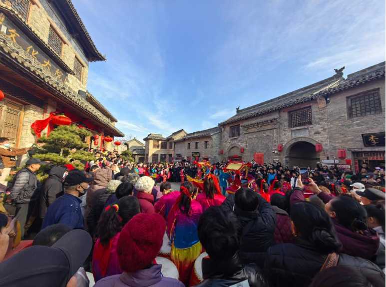 1月30日,游客正在大阳古镇景区观看民俗社火表演。(大阳镇文化站供图)