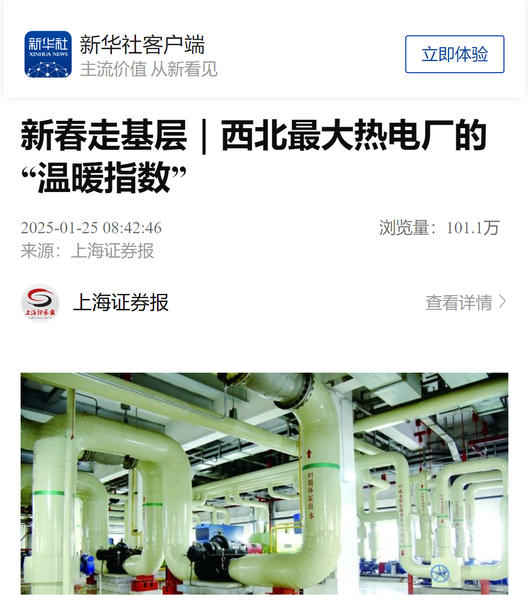 1月25日,新华社客户端刊发新闻《新春走基层|西北最大热电厂的“温暖指数”》,报道灵武电厂时刻守护70万户居民的冬季温暖。