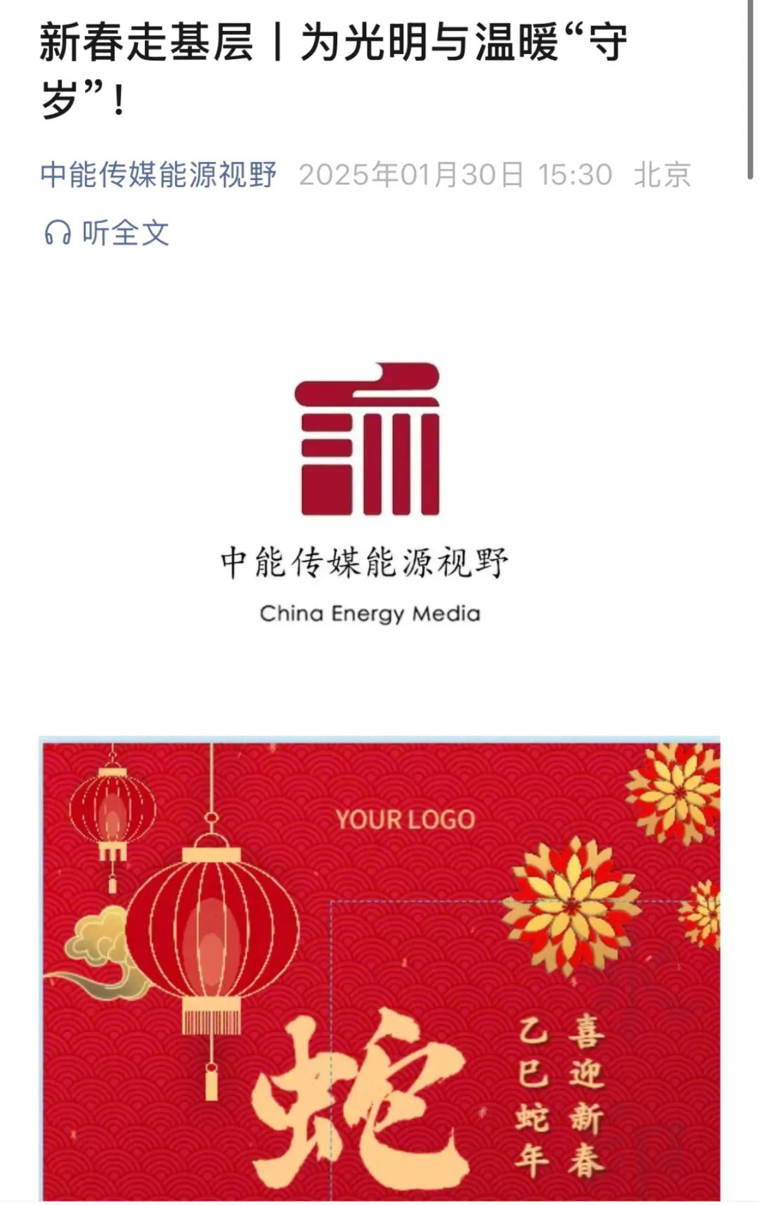 1月30日,中能传媒能源视野刊发新闻《新春走基层丨为光明与温暖“守岁”》,报道春节假期从白天到深夜,电力人的守护时时在线,他们以岗位上的坚守和奋战,为千家万户的光明与温暖“守岁”。