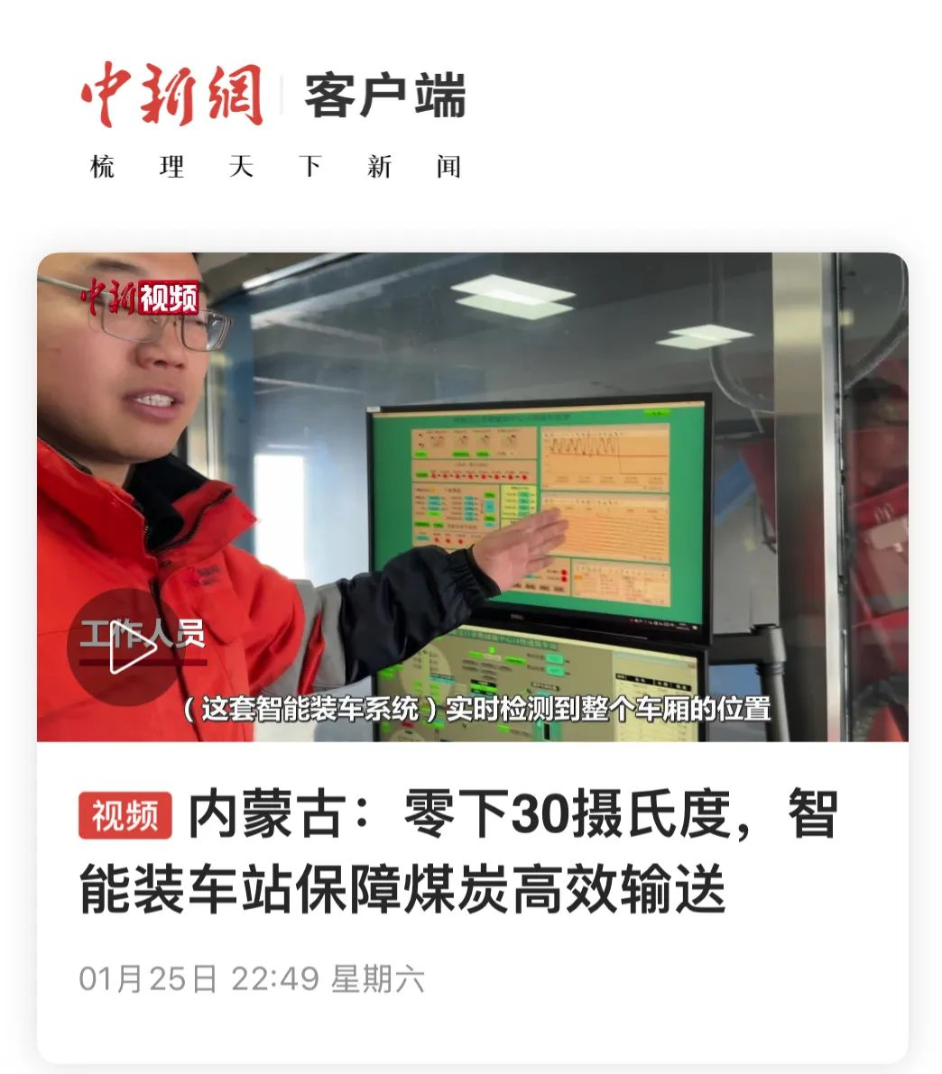 1月24日,中国新闻社刊发视频《内蒙古:零下30摄氏度,智能装车站保障煤炭高效输送》,介绍雁宝能源宝日希勒露天矿生产区内的智能装车系统——