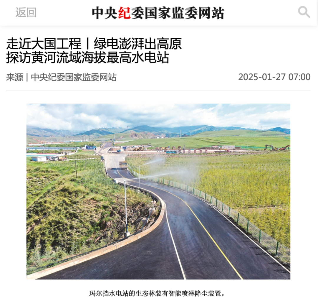 1月27日,中央纪委国家监委网站刊发新闻《走近大国工程丨绿电澎湃出高原》,报道以玛尔挡水电站为依托,国家能源集团青海公司将发挥周边新能源资源优势,将水能、风能和光能“多能互补”,打造玛尔挡“水风光蓄”千万千瓦级全清洁能源一体化大基地。该基地全部建成投运后,年均发电量预计将达480亿千瓦时,相当于青海省半年全社会用电量。