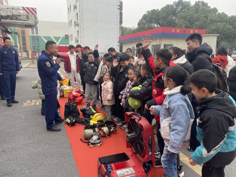 活动现场,孩子们认真观看国防教育片,影片中的热血画面与动人故事,让孩子们感受到国防力量的强大,爱国情怀在心中悄然生长。随后,孩子们在消防员的耐心讲解下,近距离观摩了解各类消防器材,亲身体验穿着隔热服、灭火防护服,感受消防员的艰辛与责任,消防安全知识也在这一过程中深入孩子们心中。