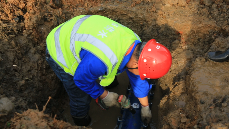 1月26日,在枝江市港华机电有限公司门口的管网监测点,董市镇供水服务中心的工作人员正在查勘管网故障情况,有条不紊地将故障管道进行更换和衔接,保障居民的安全用水。“春节期间我们全员在岗,我们一共分为6个小组,对我镇供水管网拉网式全面排查,确保全镇安全稳定供水。”董市镇供水服务中心主任骆海波说。