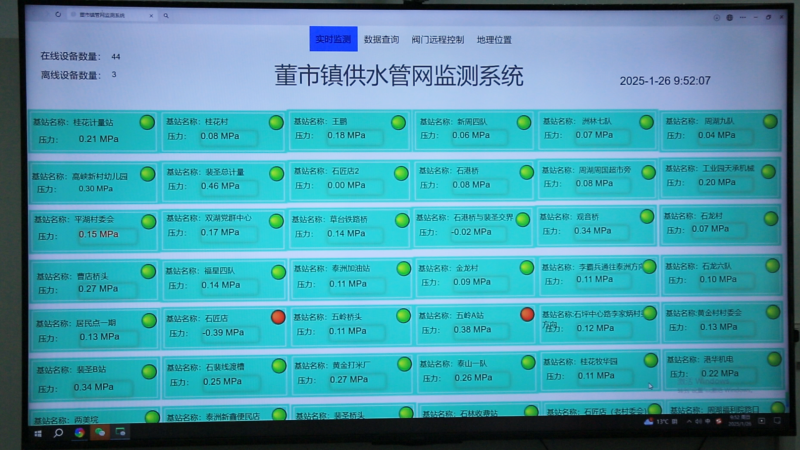据了解,2024年董市镇供水服务中心引进了管网压力检测系统,可以实时监测水量和管网压力变化。一旦发现监测的基站有故障,工作人员可以远程控制基站阀门,将故障点的水阀关闭确保供水安全。骆海波告诉记者:“我们调度中心的工作人员春节期间每天在调度室,通过管网压力监测系统,进行远程操控、调度,可以确保我镇春节期间安全供水。”