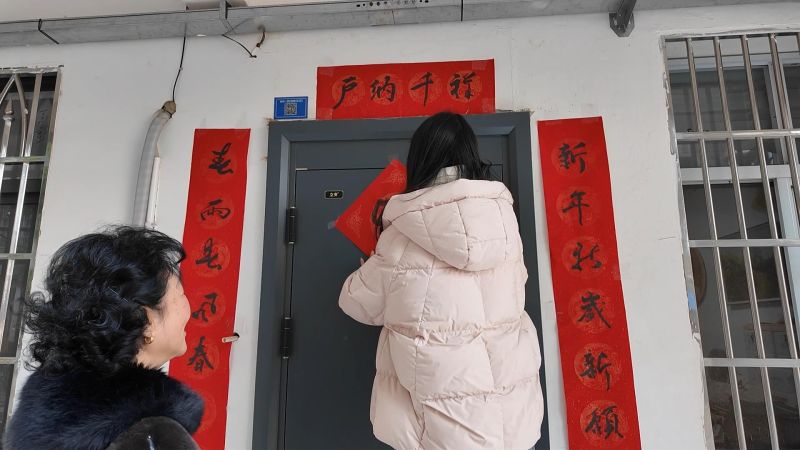 活动还未开始,许多居民就已经在广场上翘首以盼。曾爱萍是棉纺小区一号楼的住户,一号楼改造升级后,这是她在新家过的第一个新年。曾爱萍说:“儿子、儿媳今天晚上九点多就到了,特别高兴,过来选一副对联回去。”挑选好了对联,我们跟随曾阿姨来到了她的新家。