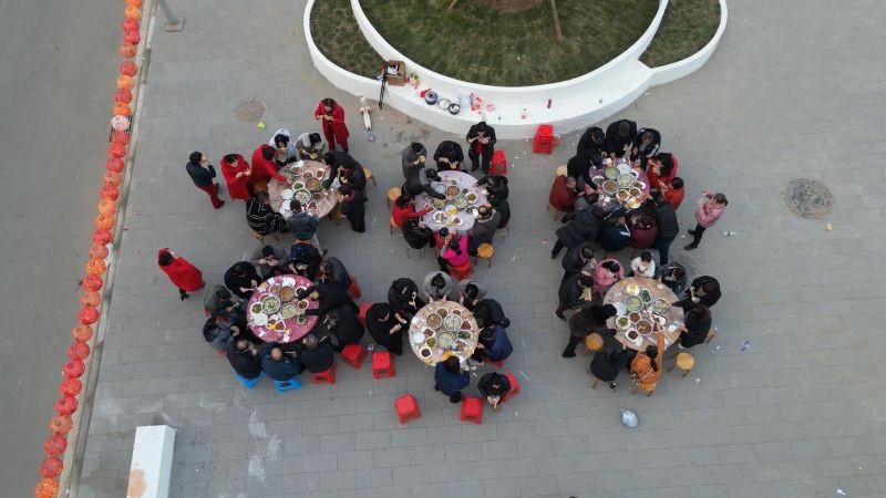“菜来!”随着一声嘹亮的嗓音,“百家宴”正式开席。居民们将一盘盘热气腾腾的美食端上桌。放眼望去,烹、炸、卤、煮等菜品一应俱全,大家其乐融融围坐在一起,你给我夹块鱼肉,我给你盛碗热汤,品美食、聊家常,席间洋溢着浓浓的“邻里情”。