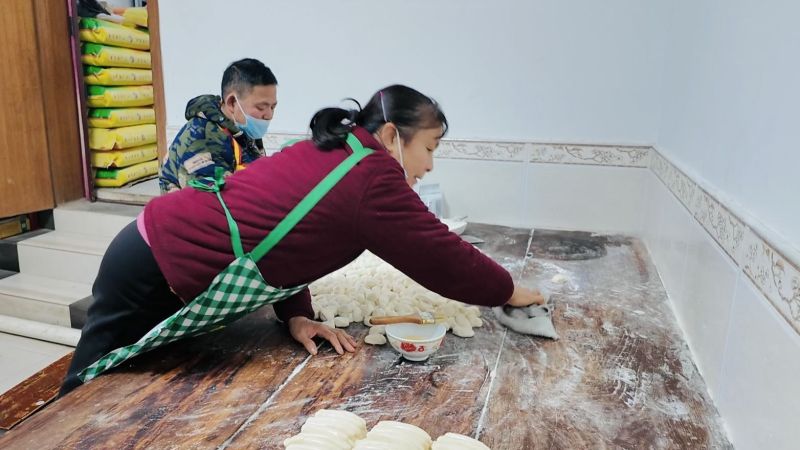 当天,记者来到村民雷应平的家中。一进门,便被一股浓郁的麻花香味所吸引。此时,雷应平正一丝不苟地扯面团子,柔韧的面团在他的双手间翻转、叠压,专注的模样,就像对待一件艺术品,每一个动作都饱含着对这份百年手艺的传承与敬意。