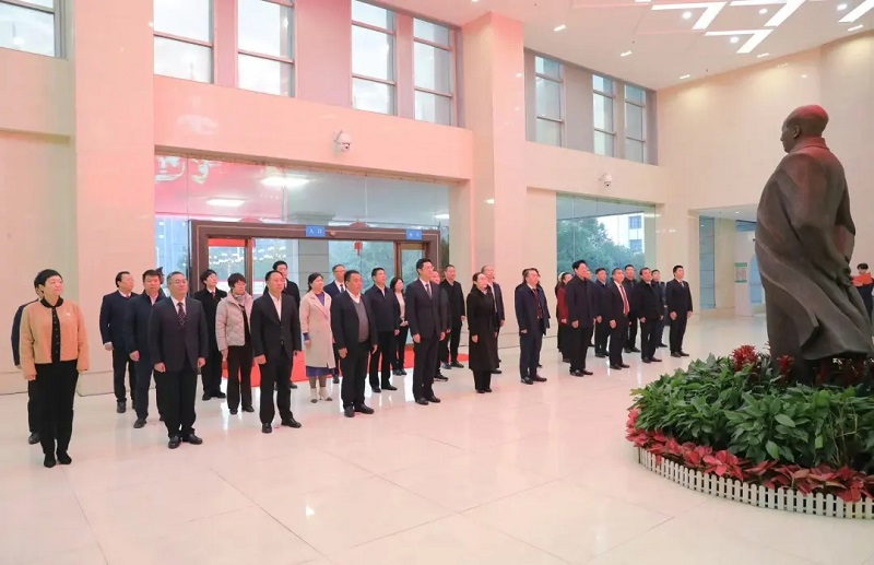 王燕首先带领全体县级领导一同向毛主席铜像敬礼,随后升旗仪式正式开始。在雄壮的国歌声中,全体人员列队肃立、行注目礼,仰望鲜艳的五星红旗缓缓升起。