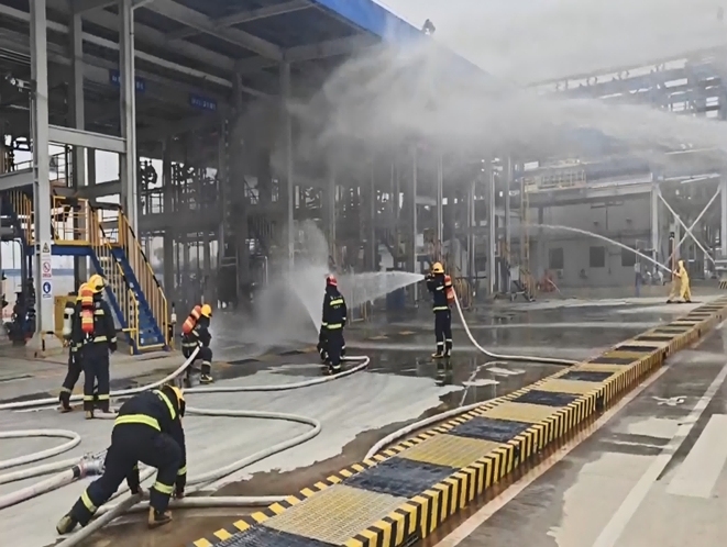 枝江融媒(通讯员 李中园)2月6日,枝江市消防救援大队姚家港消防救援站联合新源浩科新材料有限公司企业专职消防队开展联合灭火演练。