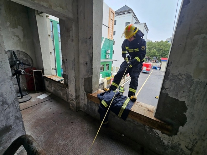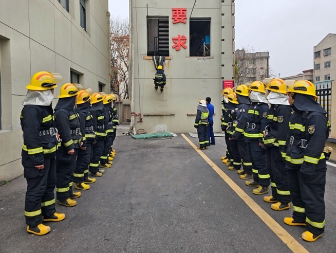 友谊大道消防救援站组织开展沿安全绳撤离训练