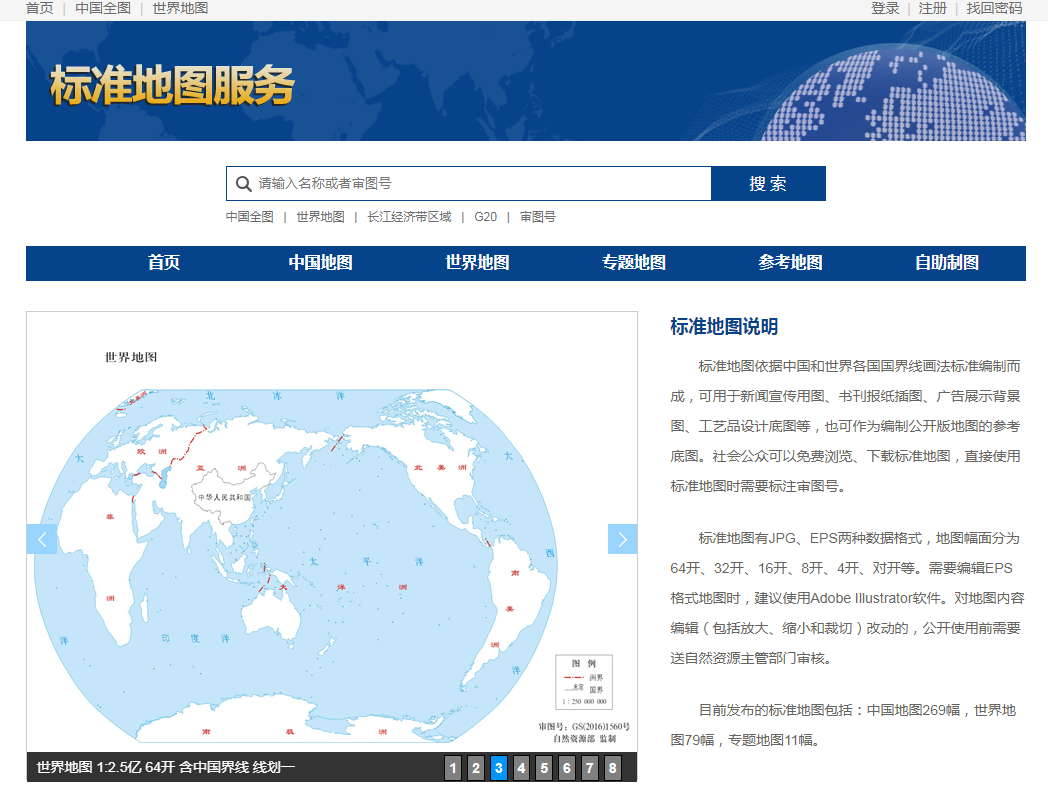 (一)通过标准地图服务网站(http://bzdt.ch.mnr.gov.cn/)发布的系列标准地图,包括中国地图、世界地图、专题地图以及提供自助制图功能。