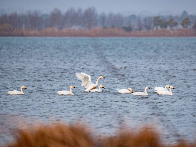 枝江金湖国家湿地公园是展现长江流域生态文明与湿地生态旅游的窗口,也是越冬候鸟的重要栖息地之一。近年来,枝江金湖国家湿地公园加强日常管理和维护,栽植湿地植物,改善生态环境,不仅为小天鹅、白琵鹭等越冬候鸟提供了安全舒适的越冬环境,也为它们创造了良好的生存和繁衍条件,前来越冬的候鸟数量越来越多。
