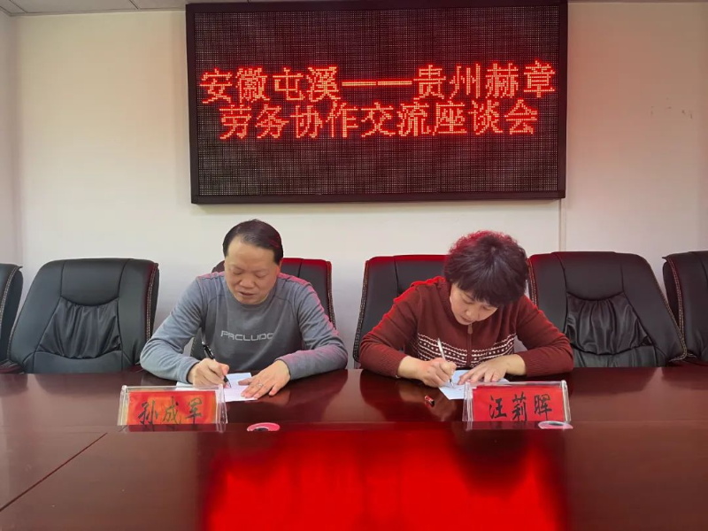 抵达当地后,屯溪区人社局一行首先参观考察了威宁人力资源服务产业园和赫章县零工市场,深入了解了当地人力资源市场的运营模式和劳务输出情况。随后,与威宁自治县人社局、赫章县人社局召开劳务协作工作座谈会,并在会上播放了屯溪区城市宣传片和工业母机产业宣传片,全方位展示了屯溪的城市魅力与产业发展潜力。双方就劳务协作的现状、存在问题及未来发展方向进行了深入交流,相互分享了各自的经验做法。屯溪区人社局详细介绍了屯溪工业母机产业的发展前景和用工需求,表达了希望通过加强合作,建立长期稳定劳务输送机制的意愿,分别与威宁自治县人社局、赫章县人社局签署了《劳务合作协议》。协议的签订标志着双方劳务合作进入新阶段,将在信息共享、劳务输送等方面展开全方位合作,为屯溪区工业母机产业引入源源不断的人力支持。