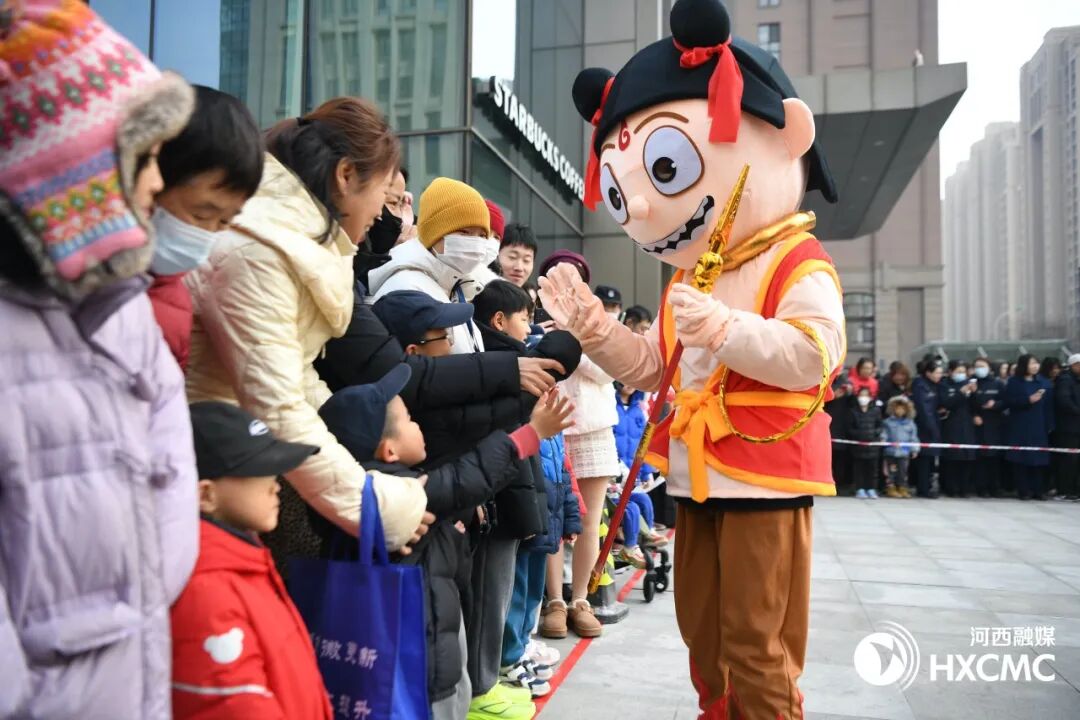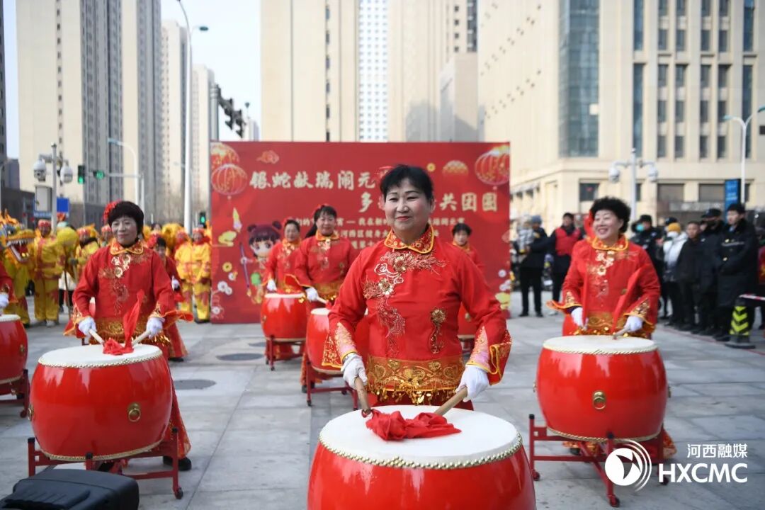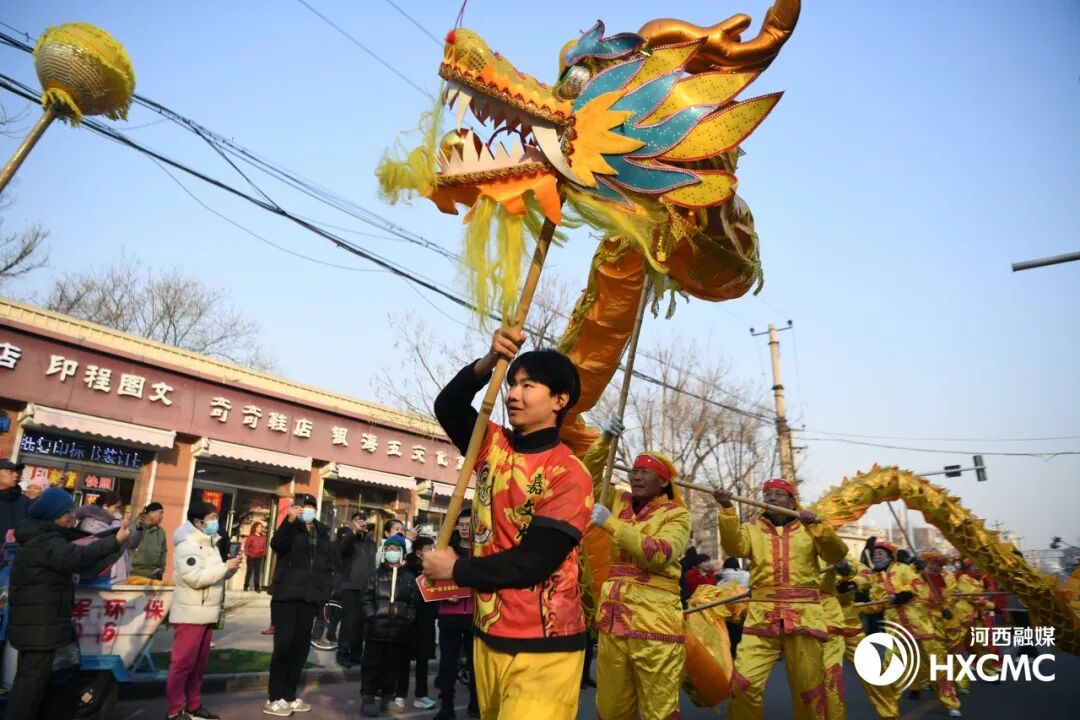 上午9点,活动在曲江公园激昂的大鼓声中拉开序幕,强劲有力的鼓点瞬间点燃了现场气氛,精彩的舞龙舞狮表演惊艳登场。在第二站中海大厦所在的新八大里商务区,小车汇和秧歌队的加入吸引了更多观众。演出紧跟热点IP,在原有的小车汇表演内容中创新融入了“哪吒”形象,小哪吒与观众们的互动让现场氛围持续火热。此次参演的“海之俏”秧歌队曾多次参与全国各级文化演出活动,由64名常年活跃在基层的文艺志愿者组成,也是2024年代表天津参加中国新疆民间艺术季的唯一一支民间艺术社团。演员们手持彩扇和手绢,扭着欢快的秧歌步,脸上洋溢着幸福的笑容,将喜庆祥和传递给现场观众。随后,财神爷扮演者手持金元宝,一路向居民们派发红包,带着装扮有哪吒、财神等传统文化形象的“大头娃娃”和街内优秀商户共同组成的方阵一路欢快地踩街,来到了城市绿道,将活动推向了高潮。