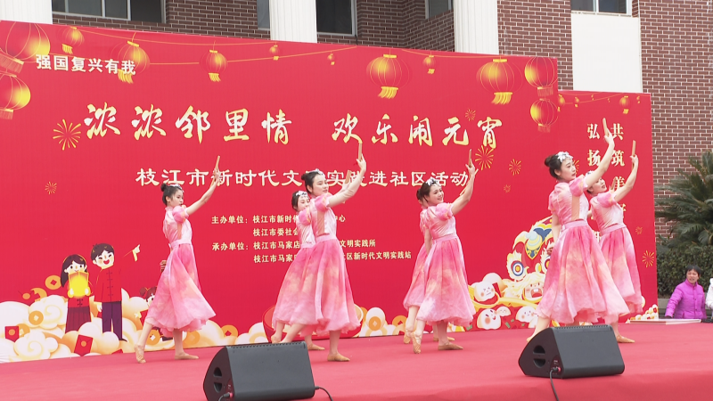 活动在由枝江市歌舞剧团带来的开场舞《十二花神秀》中拉开帷幕,丰坪巷社区银龄文艺队、政苑小区舞蹈队等表演团队轮番登场,情景表演《鼓浪屿之波》、草帽舞《幸福山歌》、腰鼓舞《吉祥中国年》等节目赢得了观众的阵阵掌声。最后,舞龙舞狮表演《鼓乐喧天庆升平》将现场气氛推向高潮,居民们沉浸在节日的欢乐氛围中。