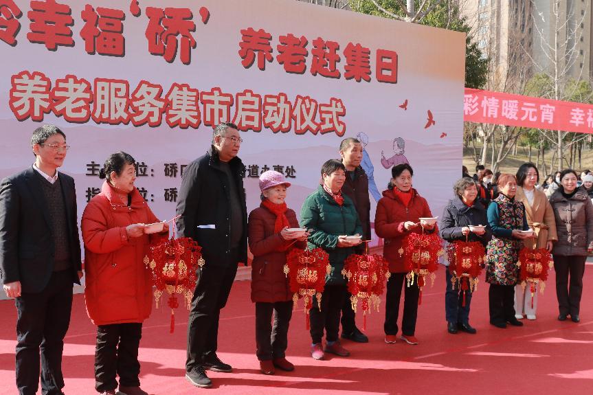 活动在9时30分准时拉开帷幕,老年人社区社会组织带来的精彩文娱表演迅速点燃现场气氛。独唱《等待》歌声悠扬,舞者们用热情洋溢的舞蹈《爱我中华》表达着对祖国的热爱,也展现出老年人积极向上的精神风貌。硚口区民政局领导和长丰街道领导先后登台发言,为大家送上元宵祝福,真挚的话语饱含着对老年人的关怀。民政部门庄重地将“银龄幸福‘硚’养老赶集日”服务队旗交到长丰街道手中,寓意着养老服务工作的接力与传承。