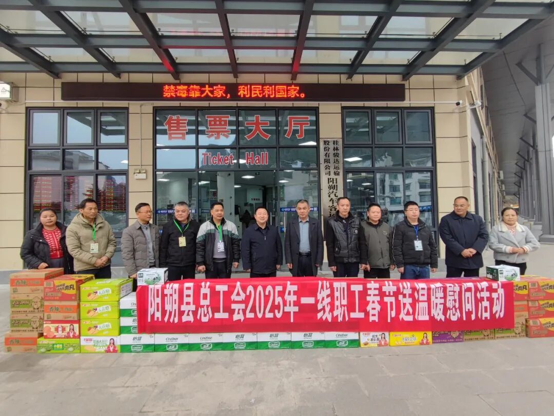 9时40分,慰问组来到阳朔县汽车客运服务站。汽车站内人来人往,工作人员有条不紊地引导乘客、维持秩序。慰问组与他们亲切交谈,赞扬他们在保障群众出行安全、便捷方面的辛勤付出,叮嘱他们注意休息,在新的一年继续为旅客提供优质服务。