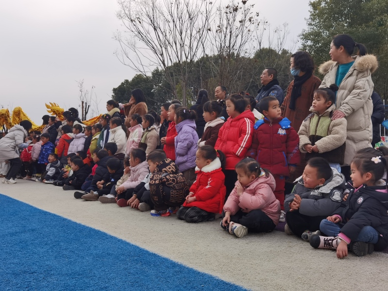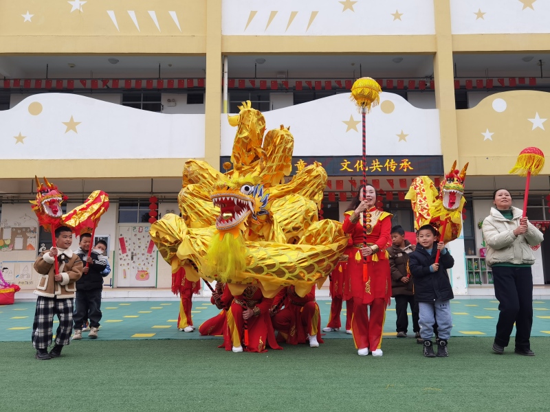 随着激昂的锣鼓声响起,一条威风凛凛的巨龙霸气登场,拉开了表演的序幕。巨龙在舞龙队员手中上下翻飞,气势磅礴。民俗艺术团成员在表演中适时停下,为孩子们讲解舞龙的历史渊源和文化寓意,让孩子们明白舞龙不仅是一项表演,更是中华民族精神的象征,承载着人们对美好生活的向往。