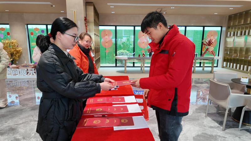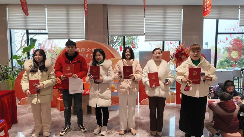 2 月 13 日上午,枝江市自然资源和规划局的工作人员早早抵达春江明月销售中心。现场,工作人员认真为 10 多位业主核验相关证件,耐心解答不动产登记相关政策,并将不动产权证书与新房钥匙,交到了已完成登记手续的业主手中。