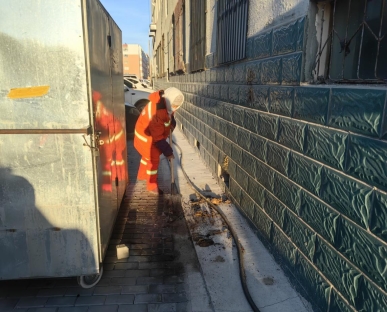 近日,当铺地集资小区的居民遭遇了一场令人作呕的困扰。在2号楼体与快餐车之间的空地出现了大量排泄物堆积的情况。现场污秽不堪,排泄物肆意流淌,恶心之感扑面而来。振兴街道北苑社区党总支书记劳丽丽接到居民反馈后,第一时间联系了亿城环卫。确定地点后,亿城环卫立即派遣工作人员奔赴现场。