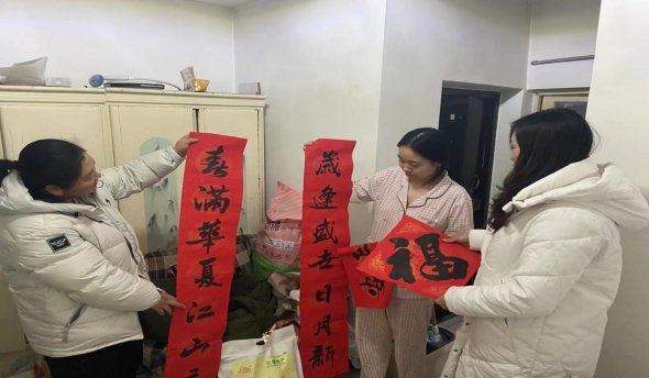 以笔墨寄情,以墨香致远。活动现场,党员们佩戴党徽,精神抖擞,群众也喜气洋洋,热情高涨。大家都积极参与到活动中来,有帮忙铺毛毡的、有拿笔墨的,来自松山区书法协会的书法老师们即席挥毫,墨香四溢,大笔一挥一幅幅尽显书法造诣、充满喜庆的对联跃然于红红的对联纸上,红通通的一片寓意着新的一年红红火火,幸福吉祥。大家纷纷挑选自己喜欢的对联,互相讨论着每幅春联的蕴意,现场共送出200余副对联。社区还到居民家中为贫困居民家庭和行动不便的老党员赠送了春联和慰问品,让他们感受到来自社区党组织的关怀和温暖,并向他们致以节日的问候。