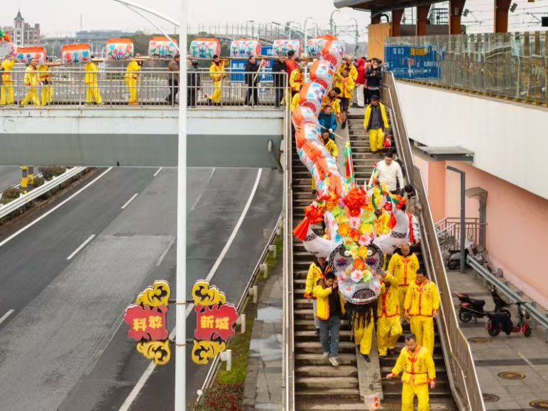 石湫街道:志愿者助力龙灯起舞,乡村非遗年味浓