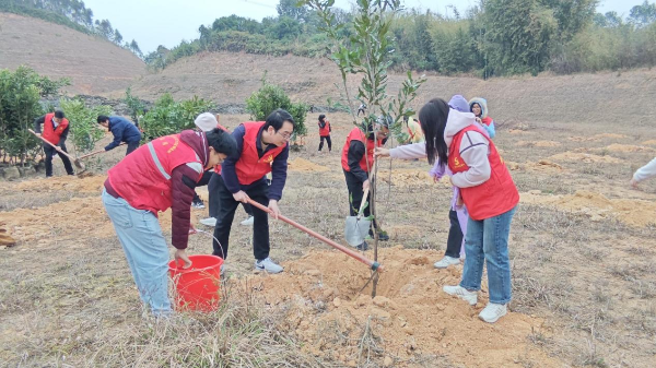 2月25日上午,县退役军人事务局组织党员干部到龙山镇白沙塘村开展乡村绿化主题党日活动,此次活动以“共建绿色家园,守护绿水青山”为主题。白沙塘村为局党支部党建联系点,也是今年龙山镇乡村绿化植树活动的主会场,为做好本次活动,局党支部动员了12名党员干部参与,以实际行动践行“绿水青山就是金山银山”理念。
