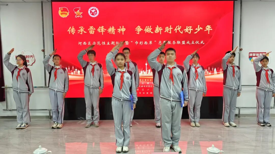 为深入学习贯彻习近平总书记关于少年儿童和少先队工作的重要论述,认真落实《关于健全新时代志愿服务体系的意见》,弘扬“奉献、友爱、互助、进步”的志愿服务精神,以第62个“学雷锋纪念日”为契机,“传承雷锋精神,争做新时代好少年”河西区示范性主题队日暨“巾彩西岸”志愿服务联盟成立仪式在天津市田家炳中学举行。