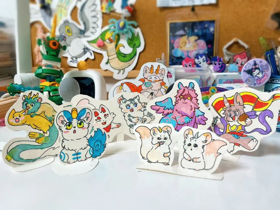 除了收集周边,热爱绘画的李苡凡还亲手制作了许多立体纸动漫人物。从构思、绘制到剪裁、组装,全由她一人完成,生动的色彩、精巧的设计,让这些立体纸动漫人物栩栩如生。