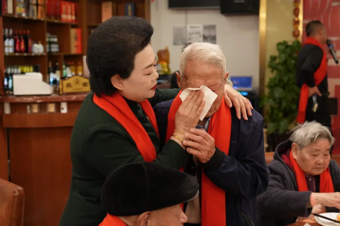 年夜饭开始前,爱心企业上海智凡文化传播有限公司为每位老人送上了一条红围巾,温暖了老人的心。今年的年夜饭菜单也颇具心思。考虑到部分老人可能患有糖尿病,赵宪珍特地让厨师将传统的八宝饭替换成了低糖的吉祥如意糕,还亲自包了馄饨。“只要我的饭店还在开,我就会继续让老人们每年来吃年夜饭。”赵宪珍说。