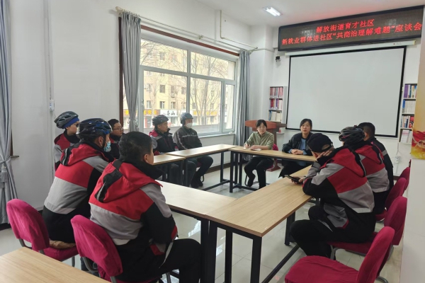 解放街道育才社区开展新就业群体进社区“共商治理解难题”座谈会