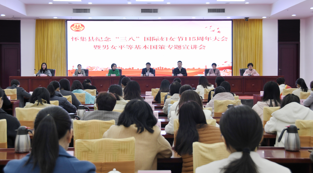 3月5日,怀集县召开纪念“三八”国际妇女节115周年大会暨男女平等基本国策专题宣讲会,深入贯彻落实习近平总书记关于妇女儿童和妇联工作的重要论述和重要指示精神,进一步号召全县各级妇联组织和广大妇女群众在经济社会高质量发展中勇担新使命、建功新时代,奋力谱写中国式现代化怀集新篇章。县委书记于晓军出席会议并讲话,县领导胡凯、梁丽芬、文红妹、李媚、陈卫红出席会议。