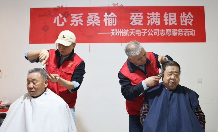一部分志愿者则带着理发工具,进入航天苑小区活动中心,用他们自学的手艺和热情的服务,为老人们修剪发型。志愿者们耐心询问每位老人的需求和喜好,精心设计发型,随着电动推剪的嗡鸣声,银发飘落,一个个清爽利落的发型呈现在大家面前。